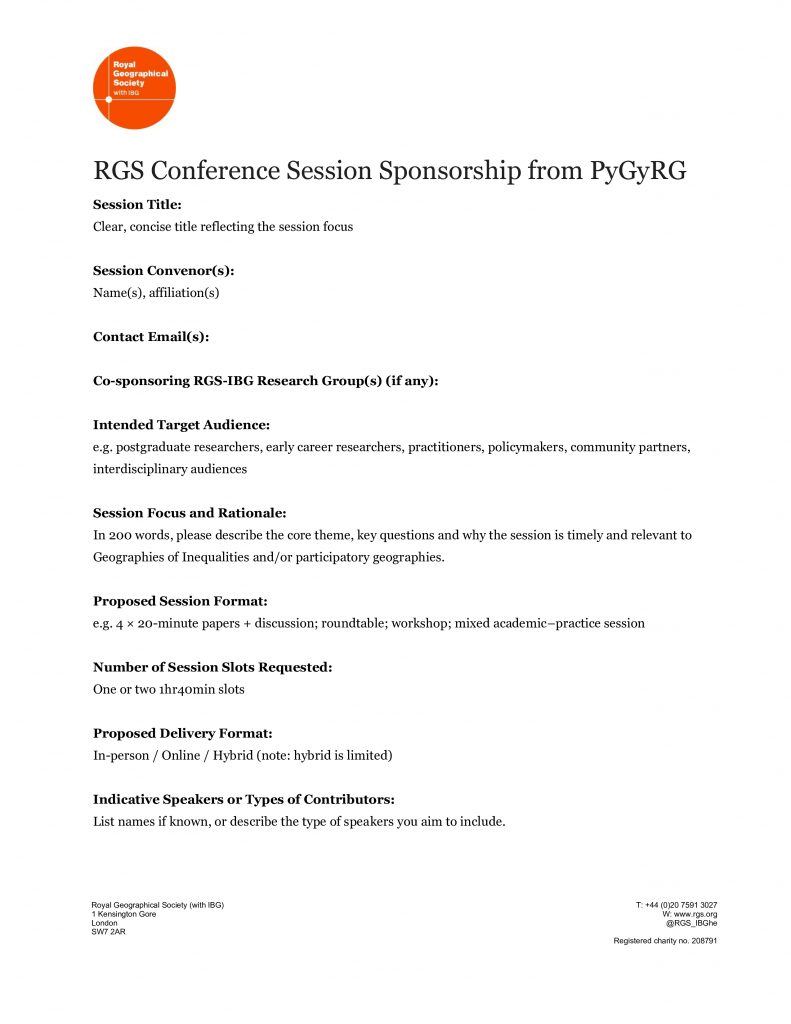 Please consider the RGS statement on accessibility at the conference when thinking about your session organisation and desired format.